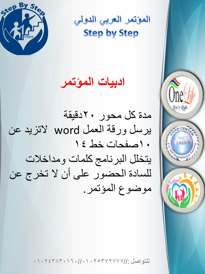 يتخلل البرنامج كلمات ومداخلات للسادة الحضور على أن لا تخرج عن موضوع المؤتمر.